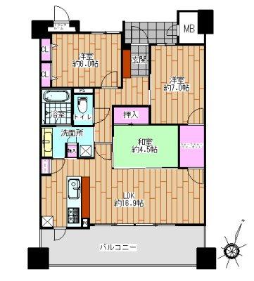 | 販売戸数/総戸数 | 1戸/54戸 | 主要採光面 | 南 | ||