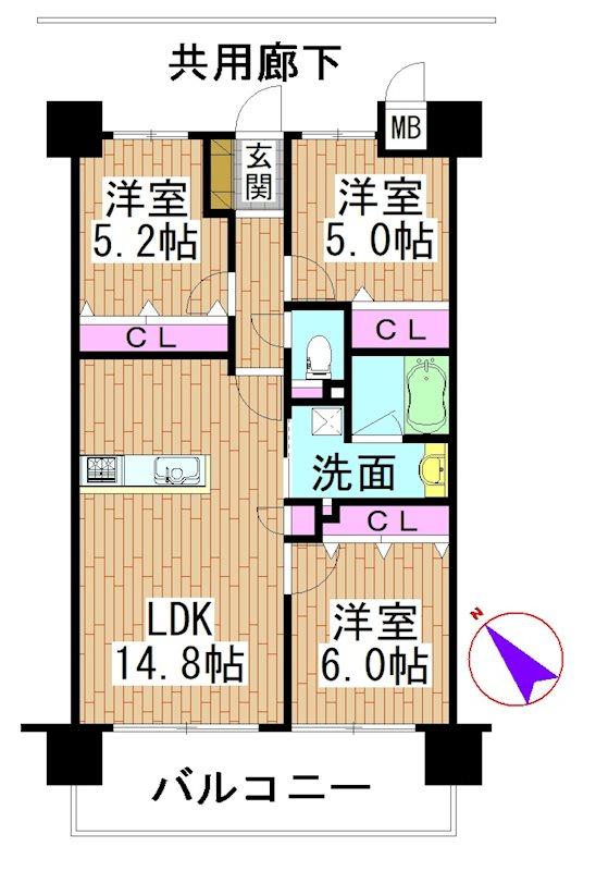 | 販売戸数/総戸数 | 1戸/63戸 | 主要採光面 | 南西 | ||