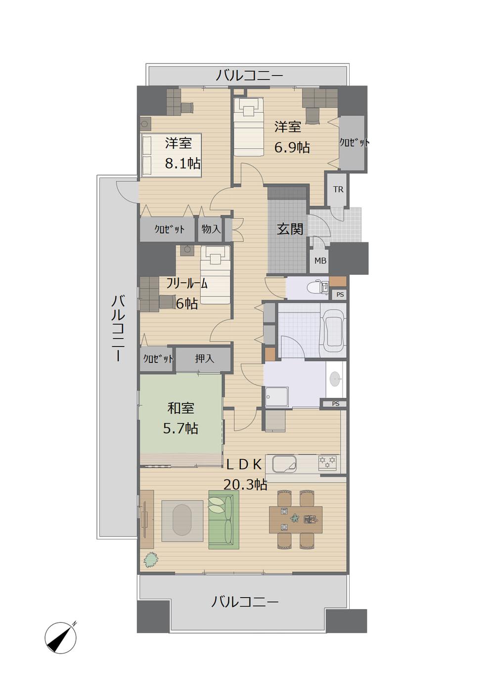 | 物件名 | 【キャッスルハイツ富田】~3SLDKの玄関もリビングも広々住空間♪~ | ||||