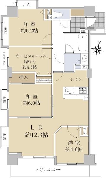 販売戸数/総戸数 | 1戸/73戸 | 主要採光面 | 南 | ||