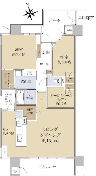 | 販売戸数/総戸数 | 1戸/67戸 | 主要採光面 | 南 | ||