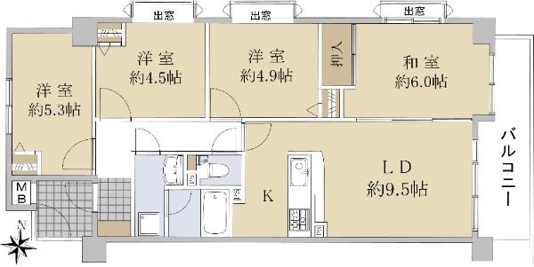 その他制限事項 | システム上、「LDK約9.5帖」と表示されていますが、正しくは「LD約9.5帖」であり、キッチンの帖数は不明です。 | ||||