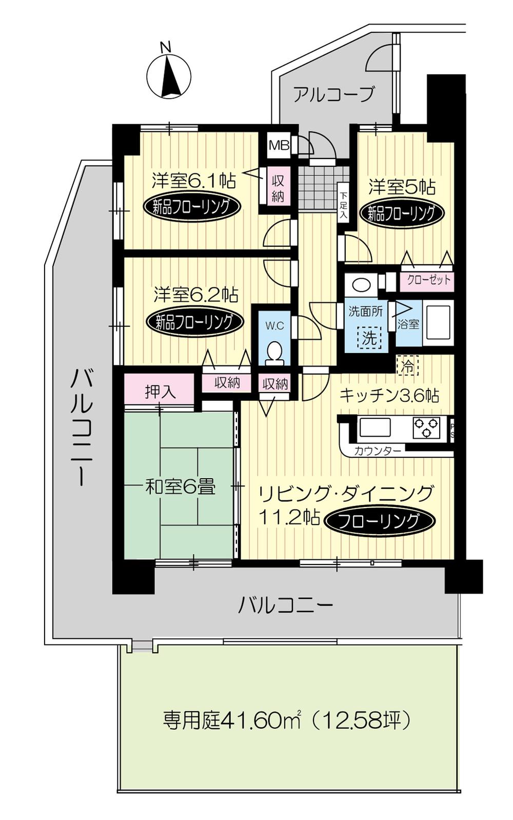 | その他面積 | バルコニー面積:26.41㎡、専用庭:41.6㎡(使用料500円/月) | 土地権利 | 所有権 | ||