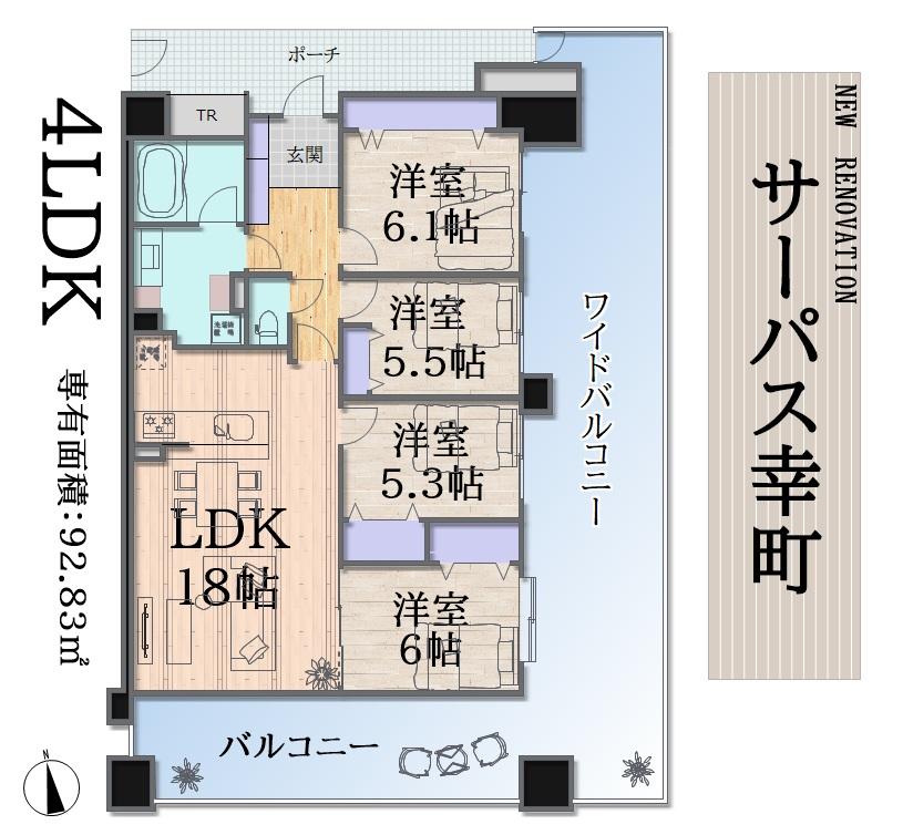 | 物件名 | #190万値下【ペットと暮らす♪】まるで戸建!92㎡の南東角部屋≫サーパス幸町 | ||||
