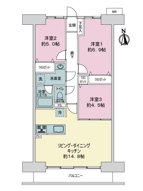 | 販売戸数/総戸数 | 1戸/181戸 | 主要採光面 | 南 | ||