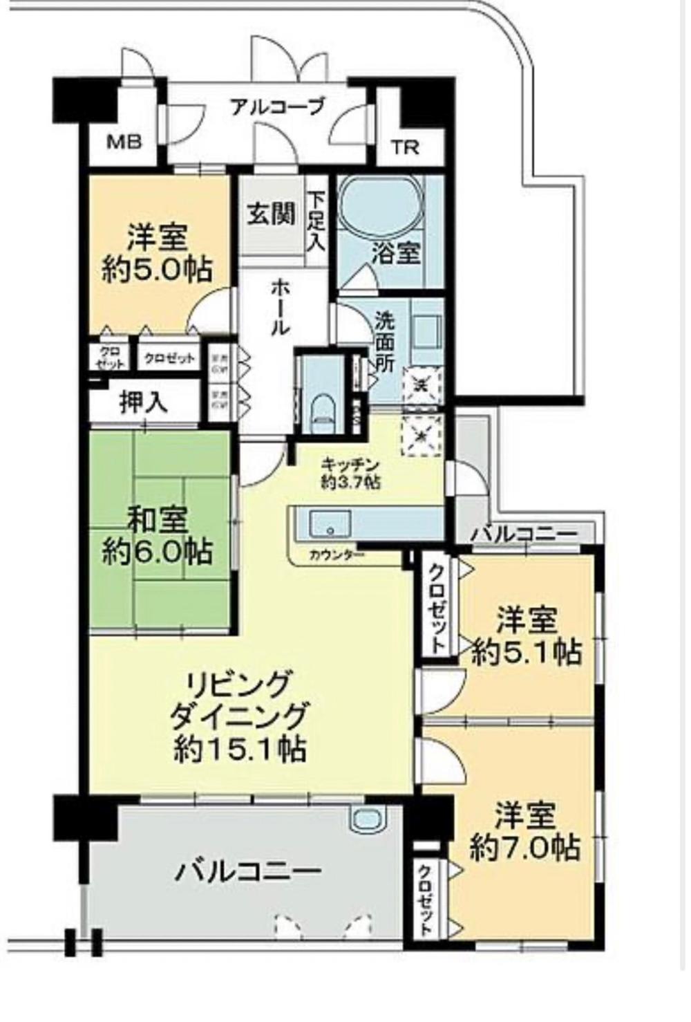 | 販売戸数/総戸数 | 1戸/52戸 | 主要採光面 | 南西 | ||
