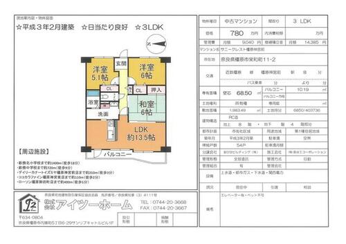 | 備考 | 施工会社:(株)長谷工コーポレーション・管理形態/管理員の勤務形態:全部委託/日勤(日本ハウズイング)・管理組合:あり・◇3/12に新価格で再登場!全居室に収納が有り!近隣にはお買い物施設も充実していて一押しの物件です◇ | ||||