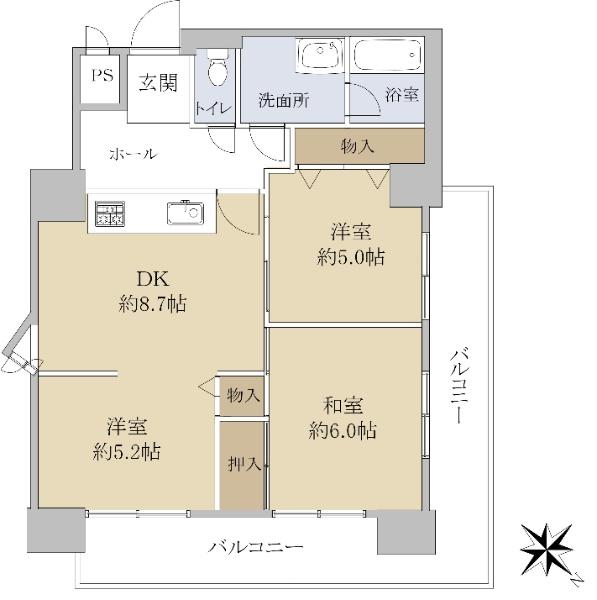 | 販売戸数/総戸数 | 1戸/56戸 | 主要採光面 | 北東 | ||