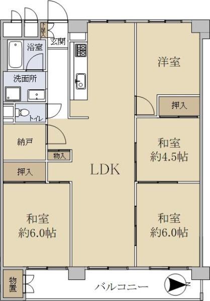 | 販売戸数/総戸数 | 1戸/53戸 | 主要採光面 | 東 | ||