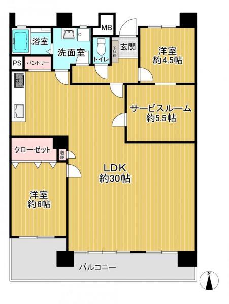 | 販売戸数/総戸数 | 1戸/84戸 | 主要採光面 | 南 | ||