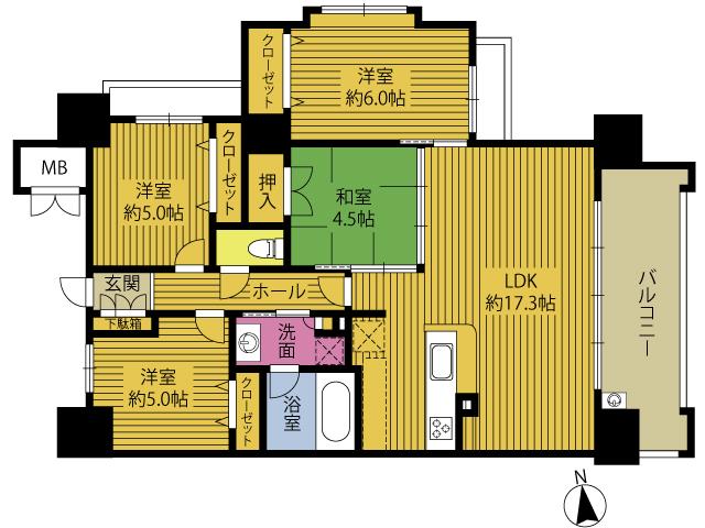 | 販売戸数/総戸数 | 1戸/62戸 | 主要採光面 | 東 | ||