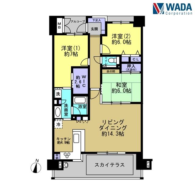 販売戸数/総戸数 | 1戸/74戸 | 主要採光面 | 南 | ||