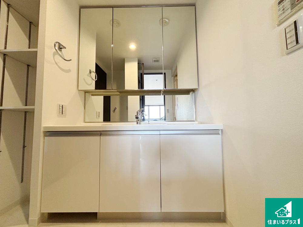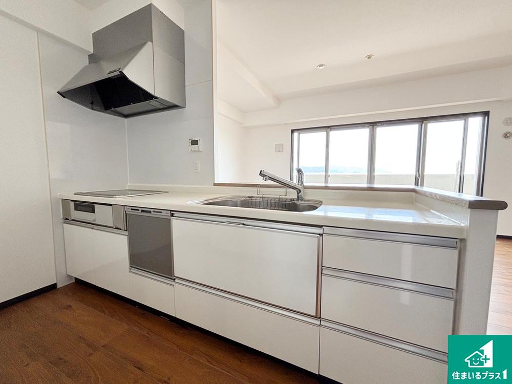 リビングと統一感があり、シンプルで使い勝手のいいキッチン。お子様と二人並んで一緒に色々なお料理に挑戦してみるのも楽しそうですね。3口コンロで同時にたくさんのお料理を作る事ができ、時短にも繋がりますよ!