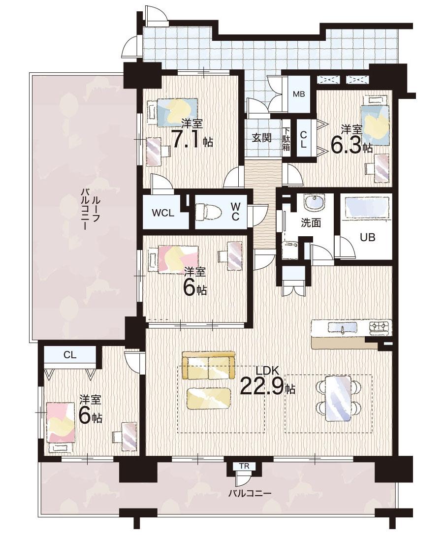 | その他面積 | バルコニー面積:15.99㎡、ルーフバルコニー:56.02㎡(使用料1680円/月) | 土地権利 | 所有権 | ||