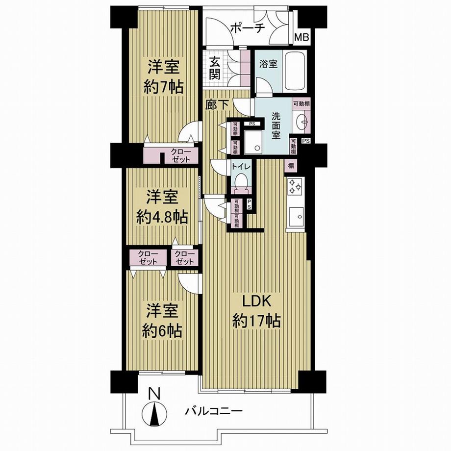 | 販売戸数/総戸数 | 1戸/84戸 | 主要採光面 | 南 | ||