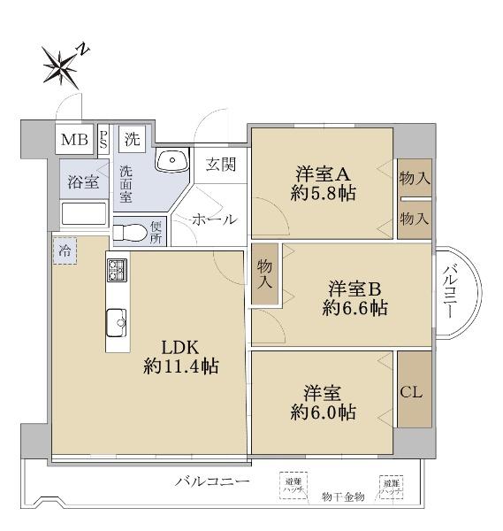 | 販売戸数/総戸数 | 1戸/17戸 | 主要採光面 | 南東 | ||