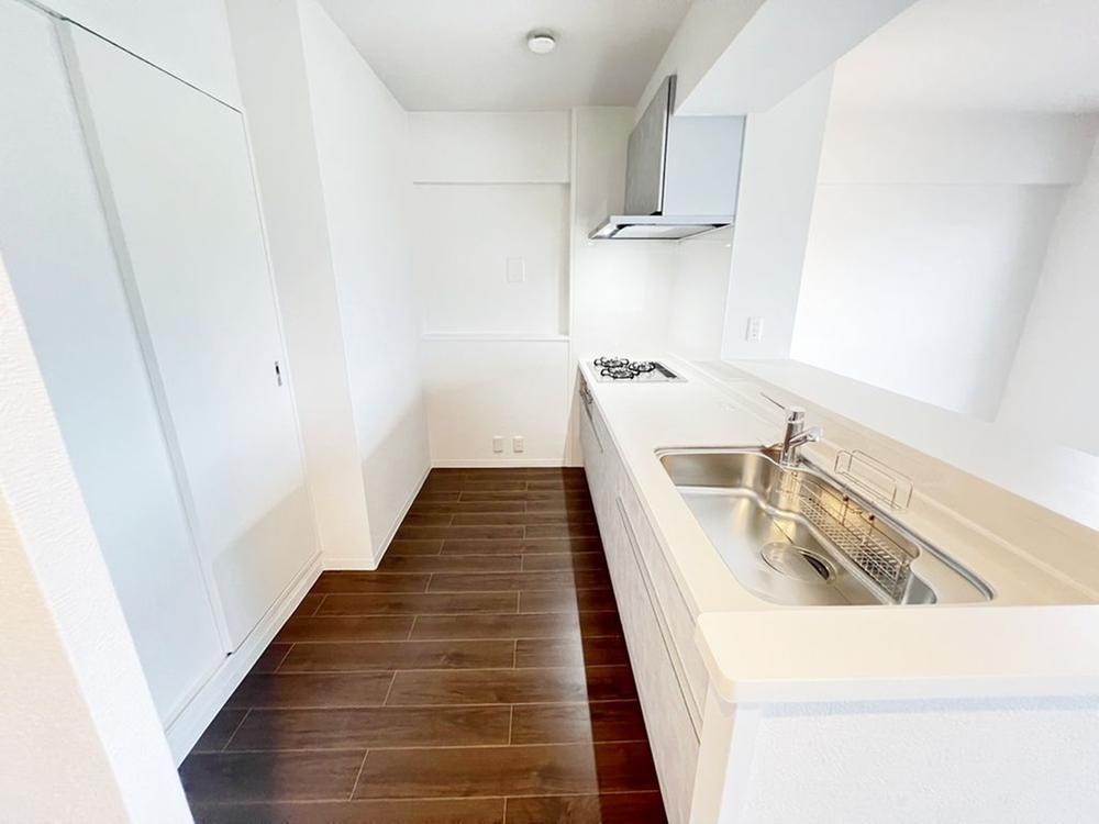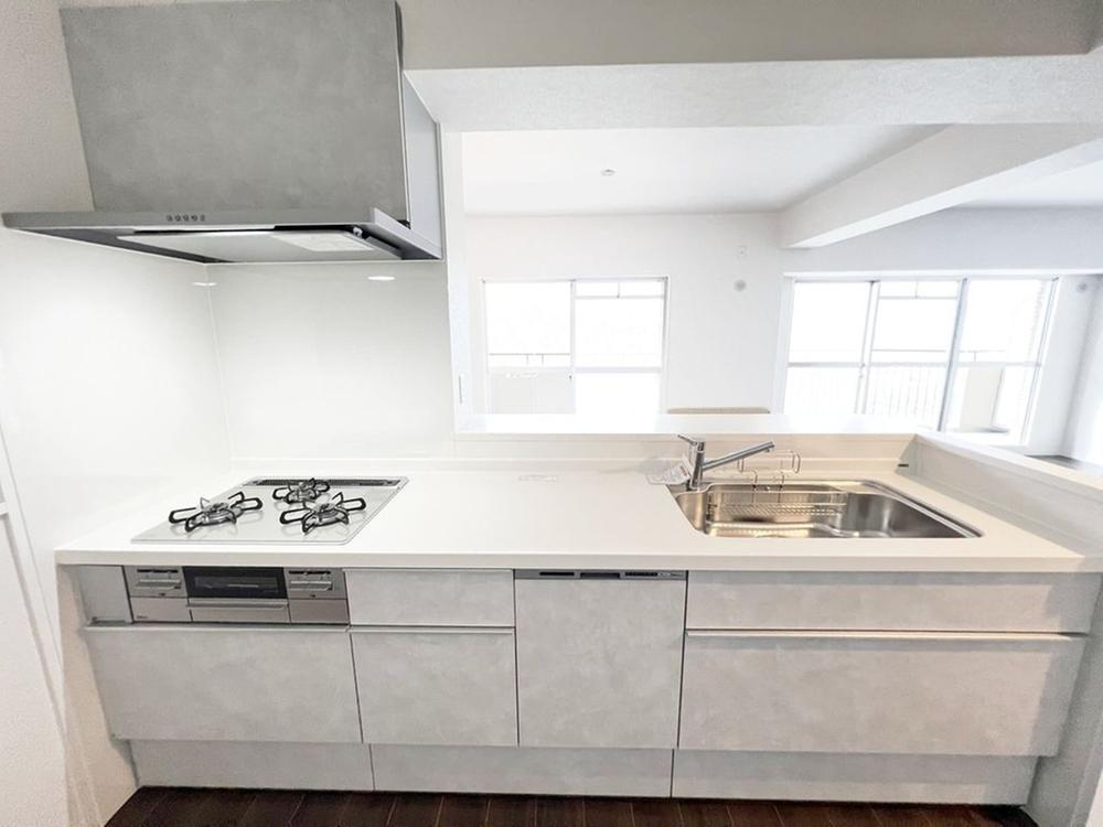 カウンタータイプのキッチンになってますので、料理をしながらリビングで遊ぶお子様の様子を見守ることや、リビングのテレビを見ながら料理をすることができますね。