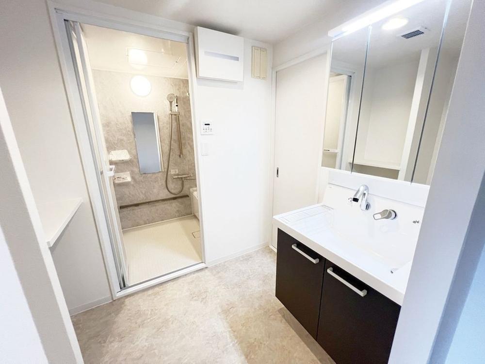 忙しい朝に便利な洗髪洗面化粧台付きのパウダールーム。清潔感ばっちりの状態です。シャワーホースも伸ばせますのでお掃除も楽ちんです。