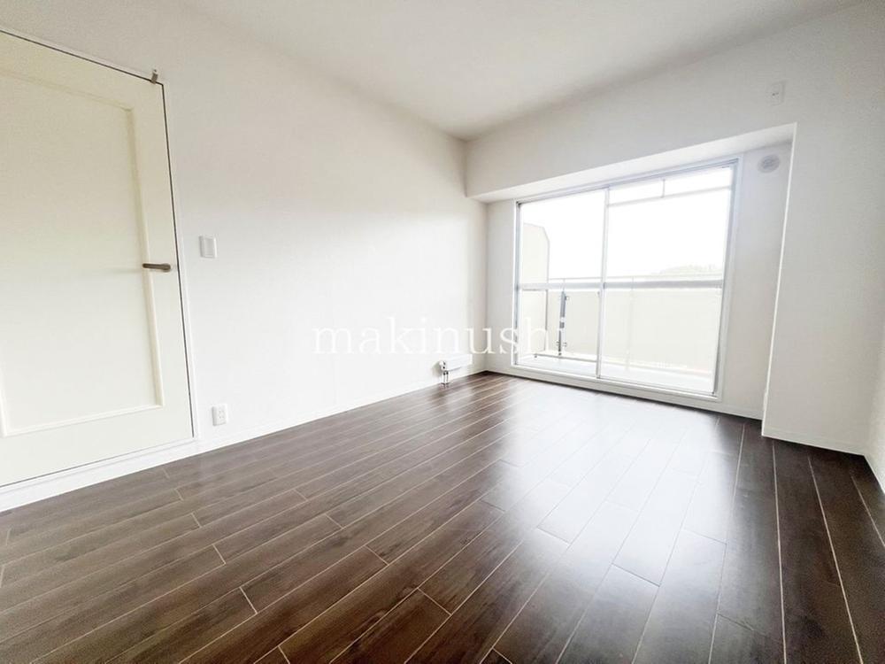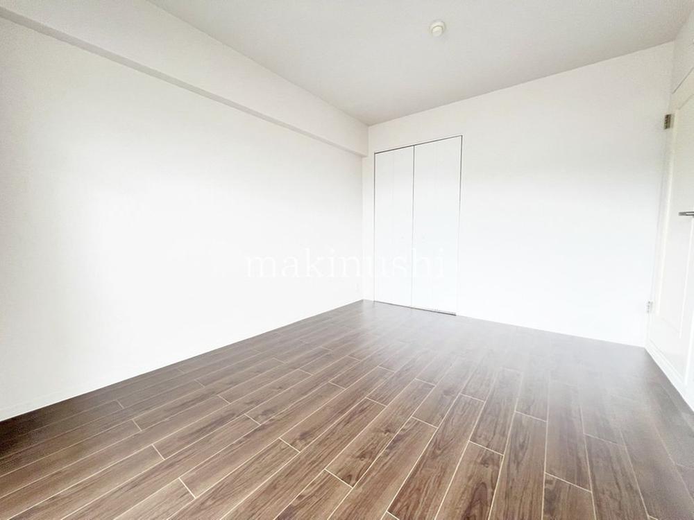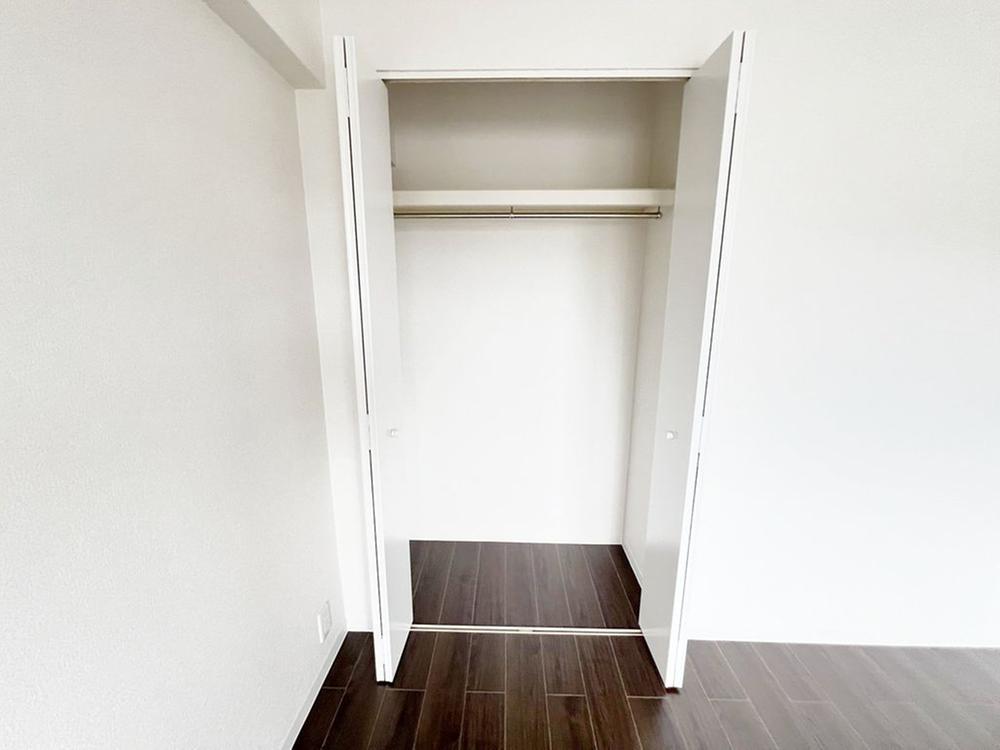 洋室です。全居室収納付きで、お片付けも楽ちんですね。ベッドを置いて机を置いてテレビを置いてもすっきりとしたお部屋に仕上がります。