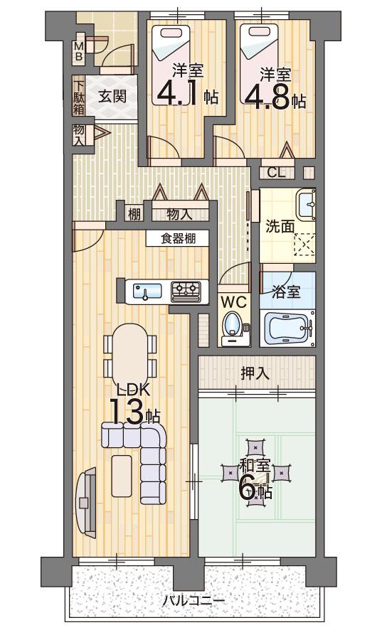 | 販売戸数/総戸数 | 1戸/333戸 | 主要採光面 | 南 | ||