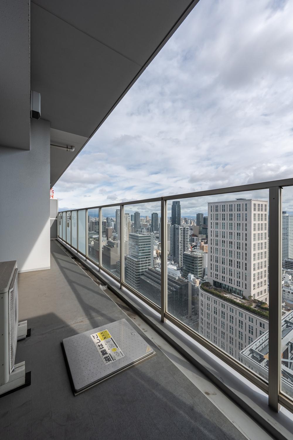 東向きバルコニーを採用。朝の光を取り込みやすく、洗濯金物を完備しています。ガラス手摺のため視界が広がり、36階ならではの眺望を楽しめます。