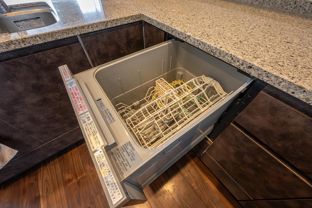 ビルトイン食器洗い乾燥機を完備。高温洗浄で油汚れもしっかり落とせ、手洗いに比べて節水効果も期待できます。後片付けの時間を短縮でき、家事の負担を軽減します。