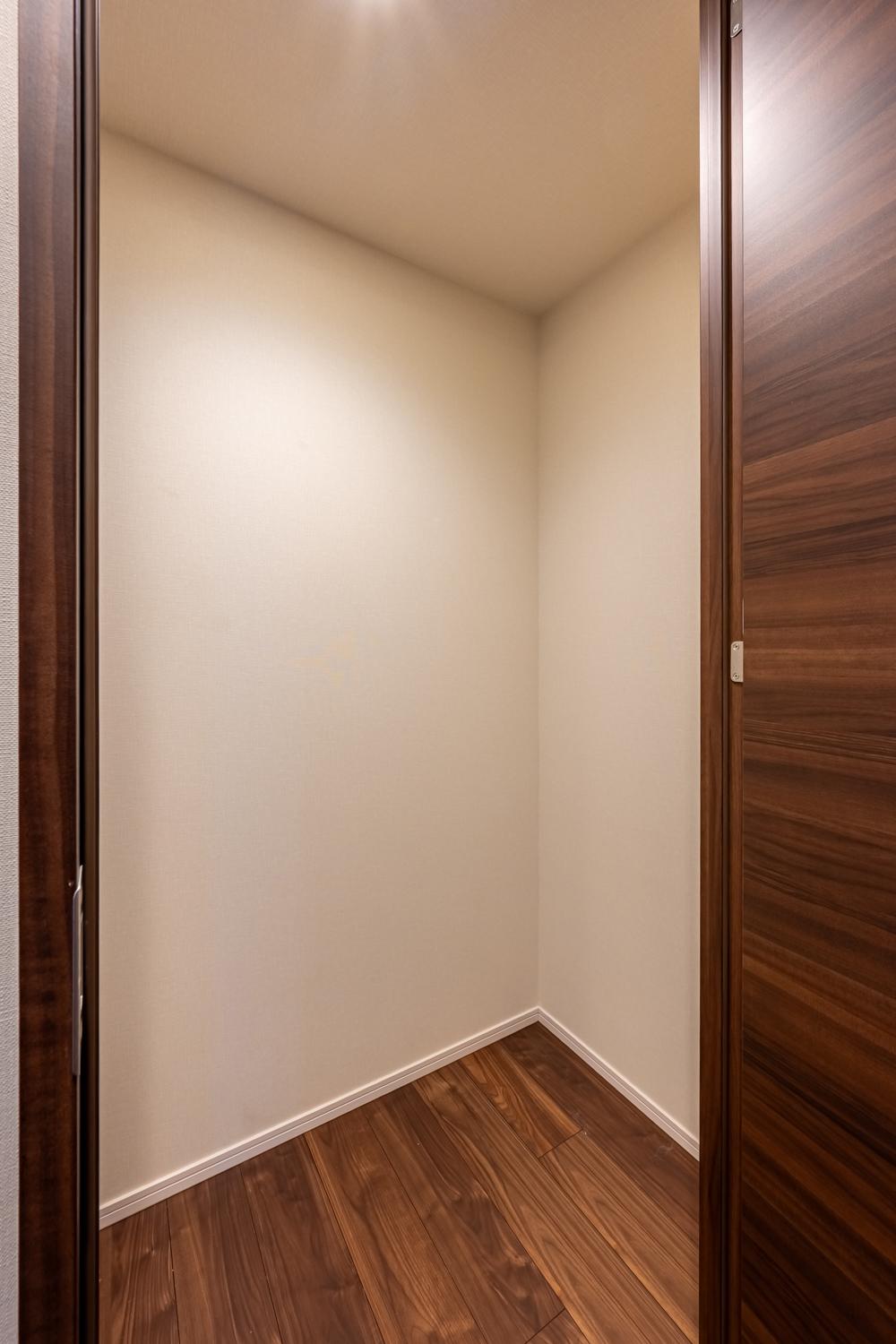 約0.9帖の納戸はLDKのすぐそばに配置。日常的に使う掃除用具やストック品をさっと取り出せ、生活動線をスムーズに保てる収納です。