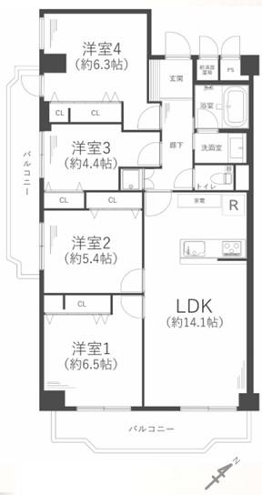 | 販売戸数/総戸数 | 1戸/80戸 | 主要採光面 | 南 | ||