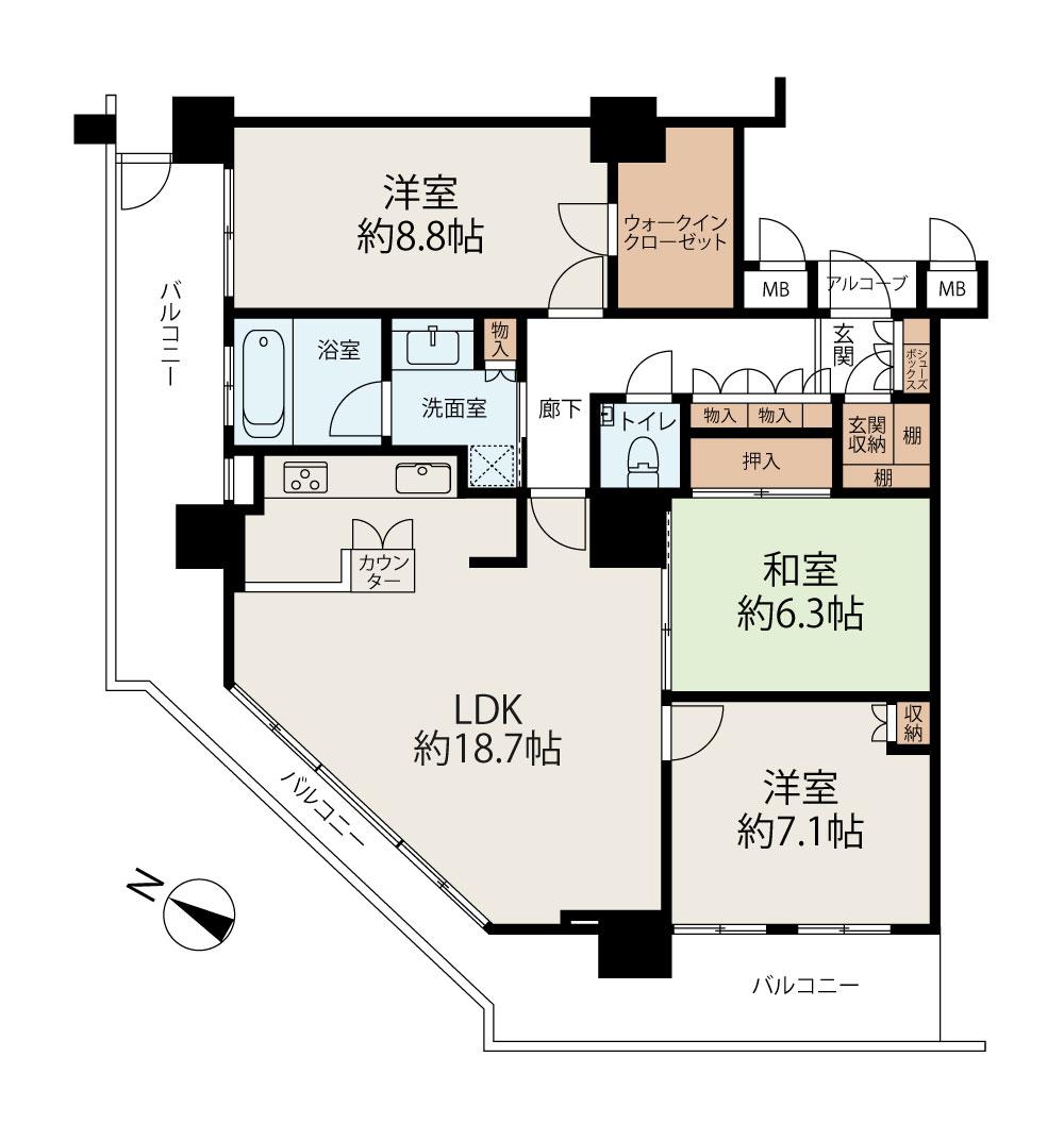 | 販売戸数/総戸数 | 1戸/202戸 | 主要採光面 | 北西 | ||