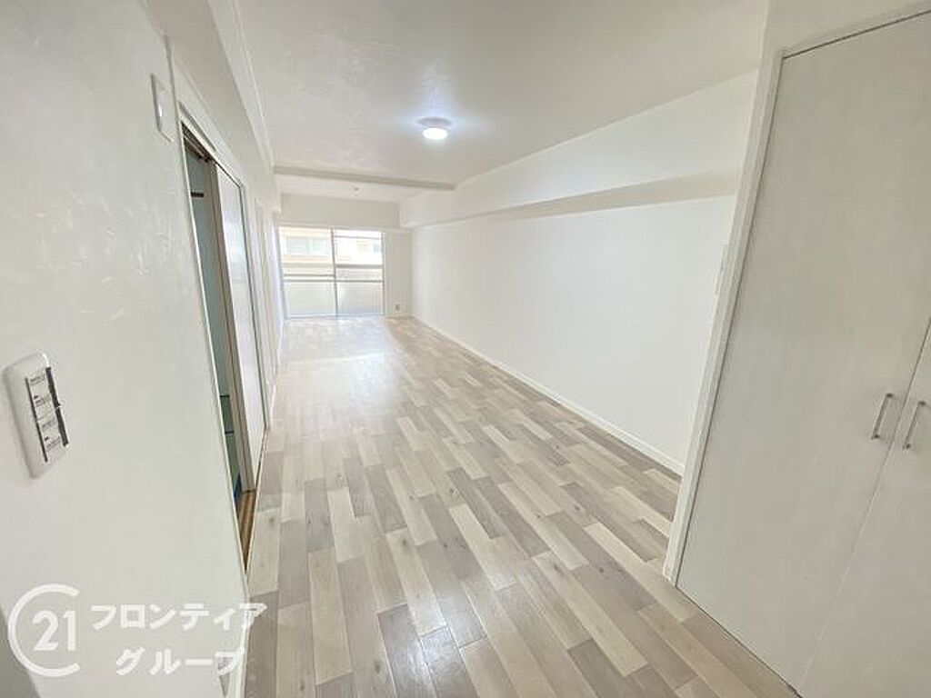 ロビーの通路部分は、明るく清潔感のある空間。日常の移動に欠かせないエリアであり、整理整頓された印象が住まい全体の快適さと管理の良さを物語っており、居住者に安心感を提供します。