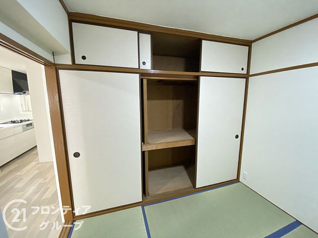 趣のある和室には大容量の収納スペースが確保されており、布団や季節の家電、普段使わない生活用品までしっかり収まります。物が外に出にくく、空間がすっきりと保てるのも嬉しいポイントで、整理整頓が簡単です。