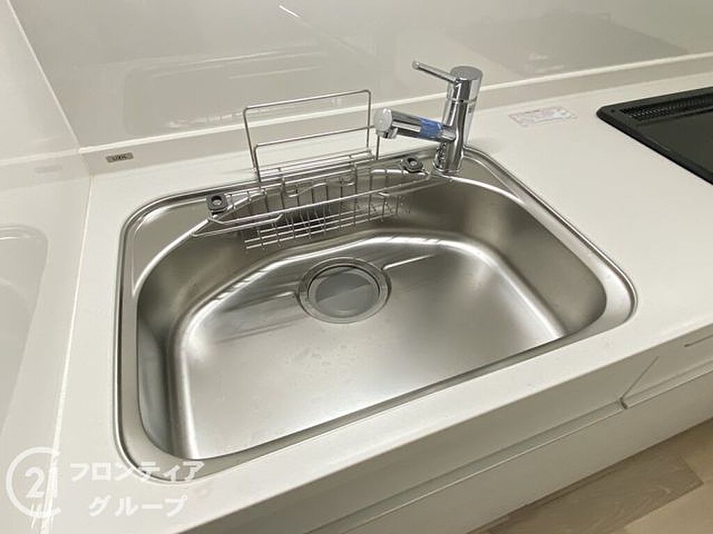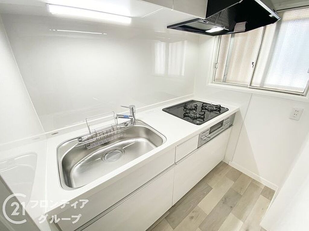 モダンなデザインが特徴のキッチンは、広々としたカウンターと豊富な収納スペースが魅力。毎日の料理が楽しくなるような機能的な空間で、使いやすさと清潔感を兼ね備えています。掃除もしやすく、常に快適です。