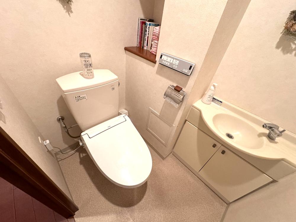 【トイレ】温水洗浄便座付きで、寒い冬でも温かい便座で快適に使用できます。トイレ内に手洗い器が備えられているので、手洗いまで済ますことができます。