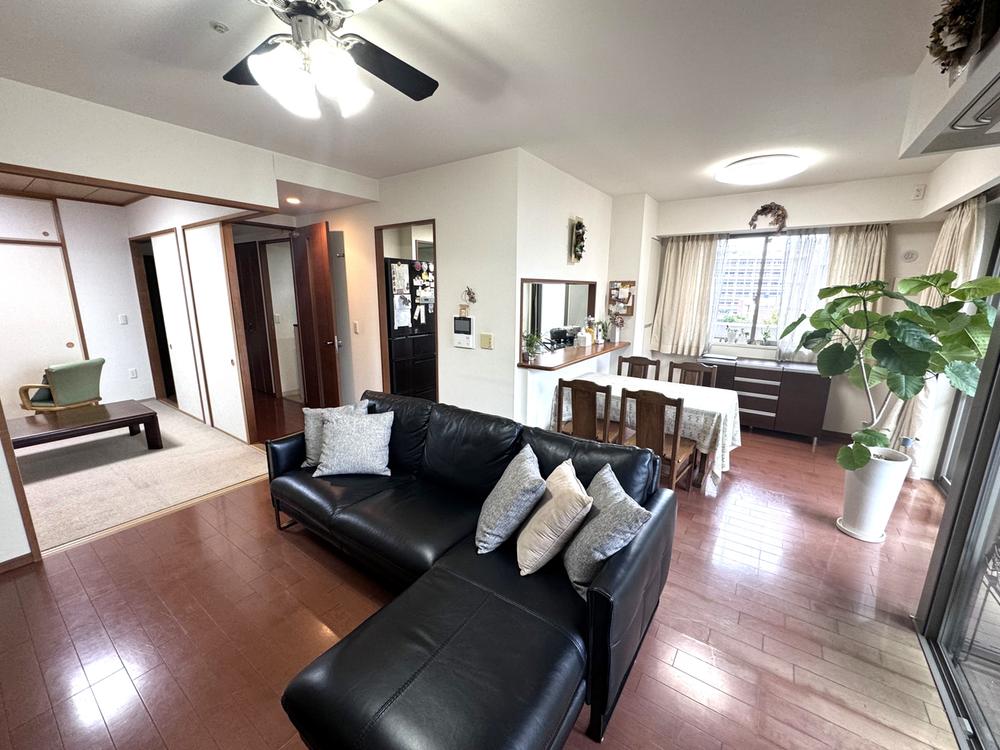 開放感ある4面バルコニー付き角住戸LDKは約18.8帖と広々とした住空間