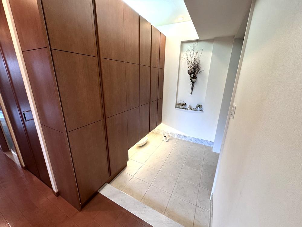 【玄関】玄関には、シューズボックスが設置されていて、散らかりがちな靴類をすっきりと片付けられます。