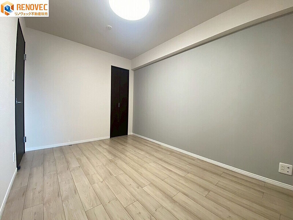 【納戸】◆約6.0帖の納戸です◆落ち着いた色のアクセントクロスがオシャレですね♪◆たっぷりの収納スペースで住空間もスッキリ!