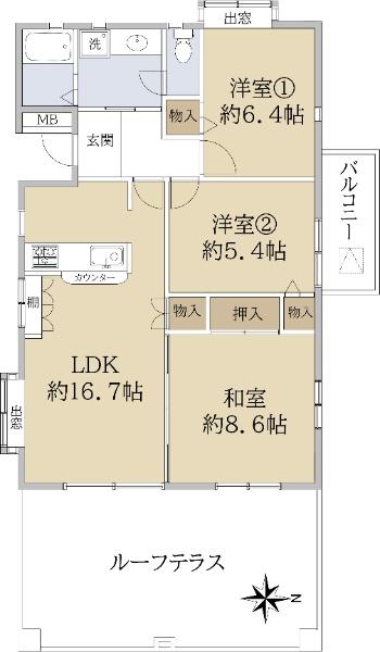 | その他面積 | バルコニー面積:4.08㎡、ルーフバルコニー:27.56㎡(使用料1100円/月) | 土地権利 | 所有権 | ||