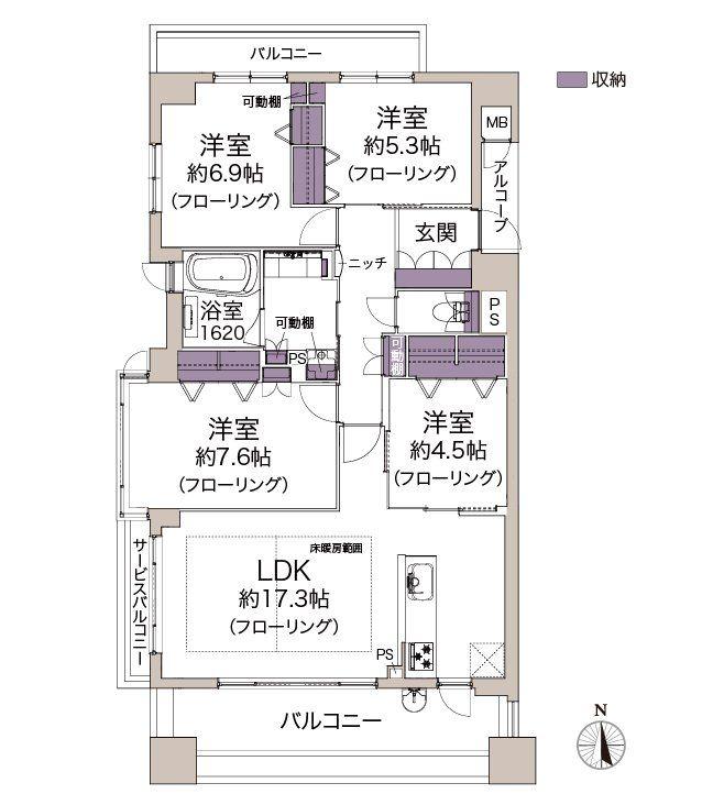 | 販売戸数/総戸数 | 1戸/76戸 | 主要採光面 | 南 | ||