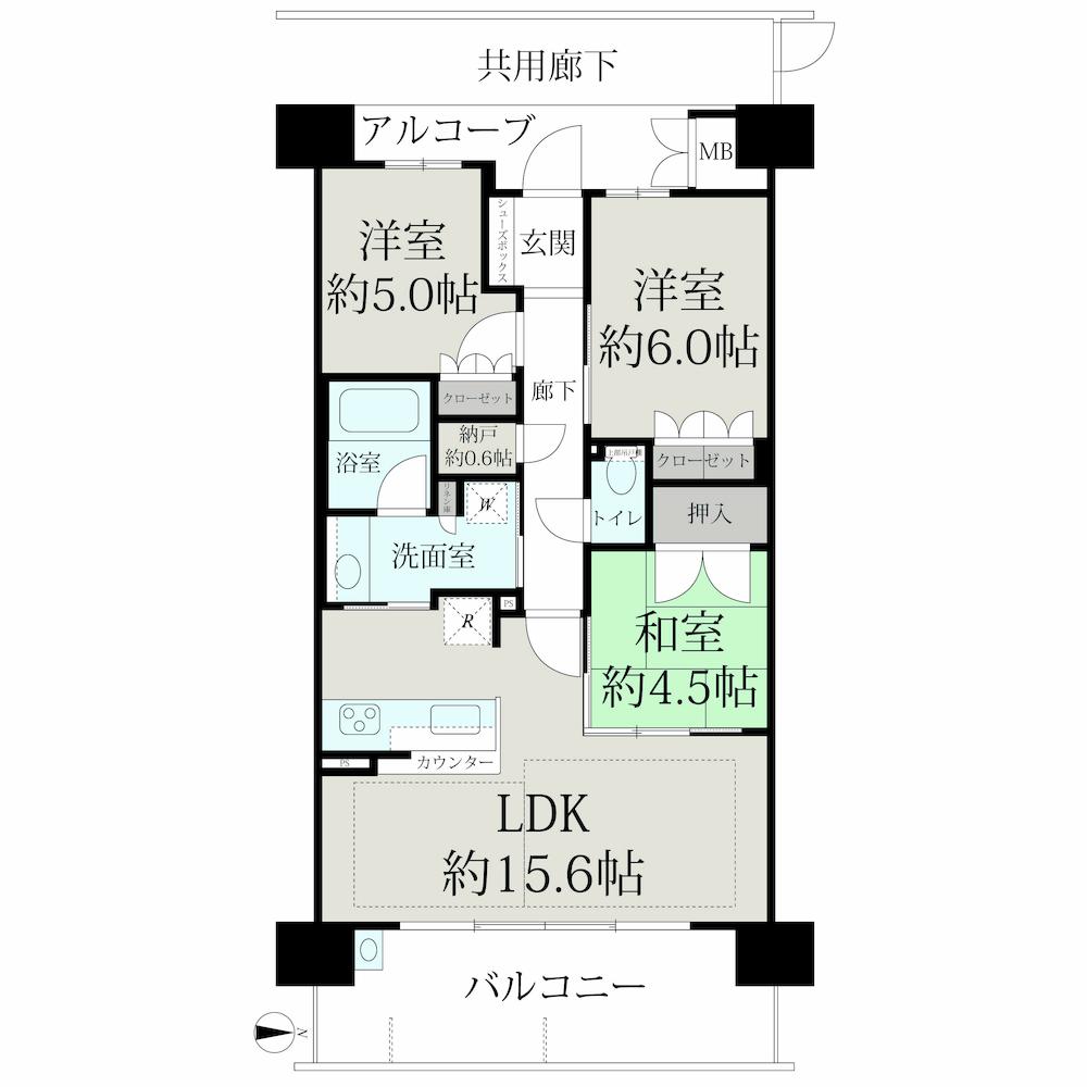 | 販売戸数/総戸数 | 1戸/103戸 | 主要採光面 | 東 | ||