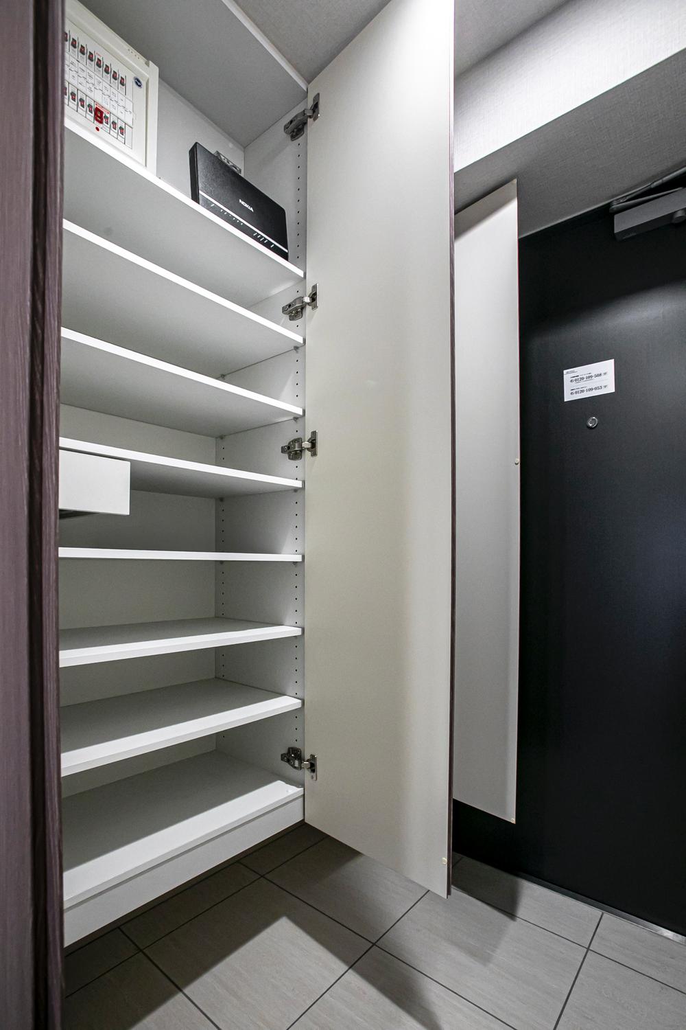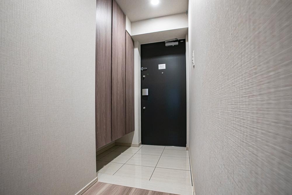 【玄関】フロートタイプのシューズボックス有。下部に普段使いの靴を置いていただけます。玄関ドアは、ダブルロック仕様+U字ロック付きです。