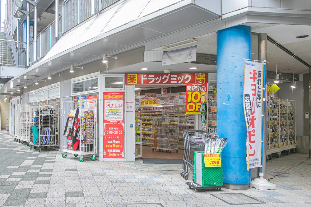 ドラッグミック北千里店まで250m 徒歩4分。医薬品の他、カウンセリング化粧品・日用品・栄養剤などを取り扱うドラッグストア。クレジットカード・電子マネーなどを利用可能です。
