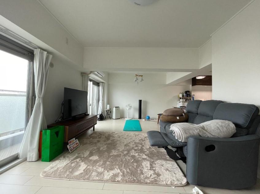 【LDK】南向き約18.1帖のリビングは南向きで、通風採光良好です。家具を配置してもゆったりとしており、ゆとりのある生活を送ることができます。2022年11月フローリング・クロス・天井リフォーム済♪