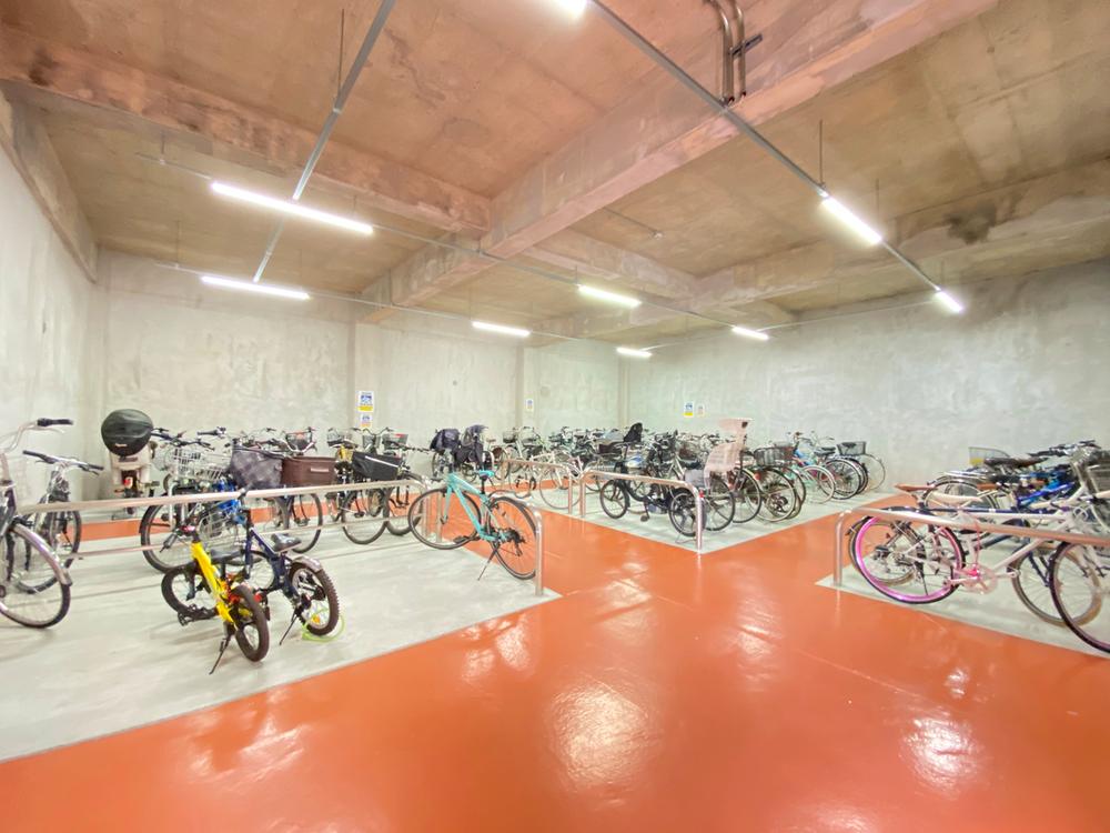 【自転車置場】屋外と屋内に自転車置場がございます。屋外自転車置場も屋根付きなので、雨や日差しから大切な自転車を守ります。屋内自転車置場はエントランスのとなりです。いずれも空き状況は確認が必要です。