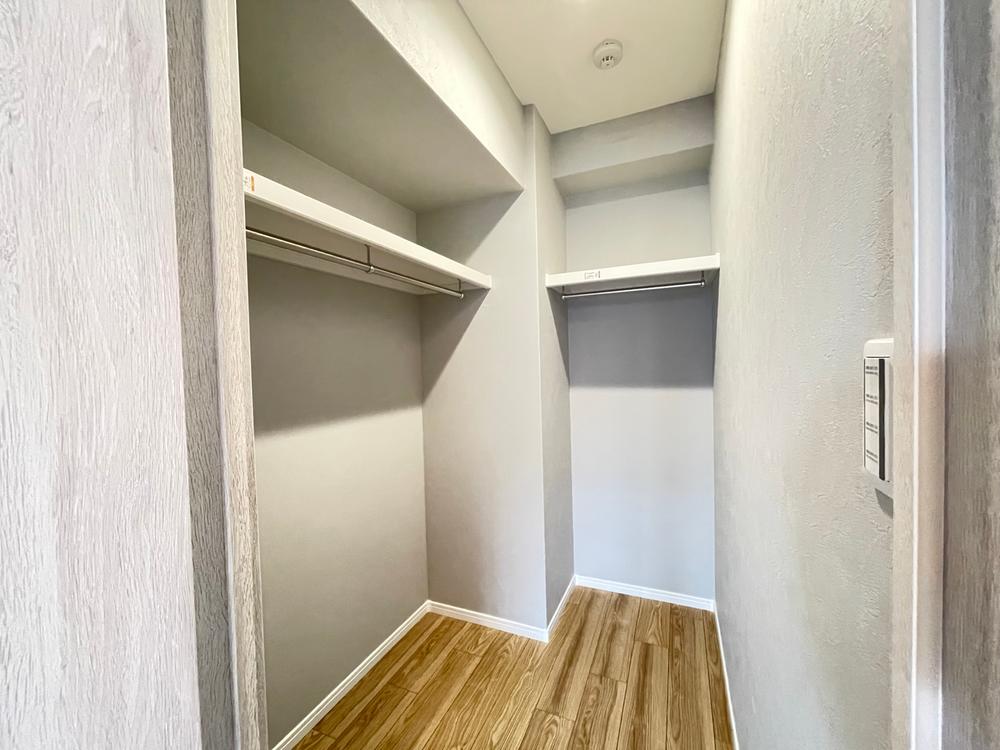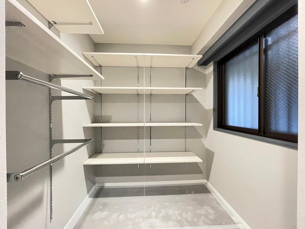 玄関横のシューズクロークです。靴だけでなく、ベビーカーやアウトドア用品などお部屋で収納できない大きなものも置けます。北側にあるので、冬場は窓からの結露が気になります。換気や内窓などの対策が必要です