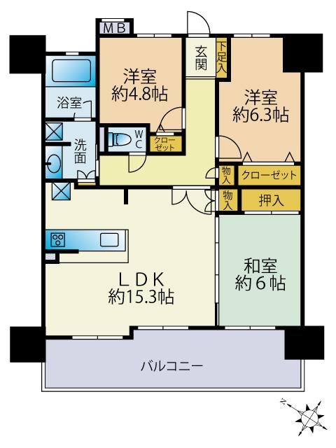| 販売戸数/総戸数 | 1戸/92戸 | 主要採光面 | 南西 | ||