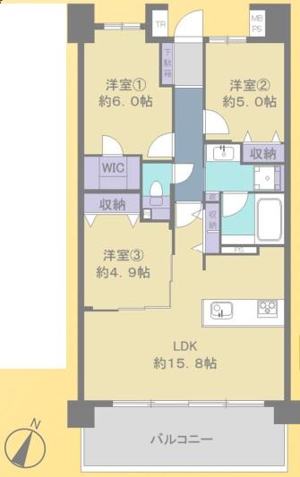 | 販売戸数/総戸数 | 1戸/60戸 | 主要採光面 | 南 | ||