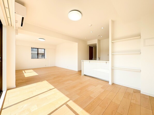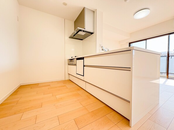 【LDK20帖】ナチュラルな自然光の中での調理。会話が弾む対面型キッチン。お洒落な食器類を余裕で収納できるスペース。動きやすい女性目線のキッチン動線。これからはお料理をつくる時間が劇的に変わります。