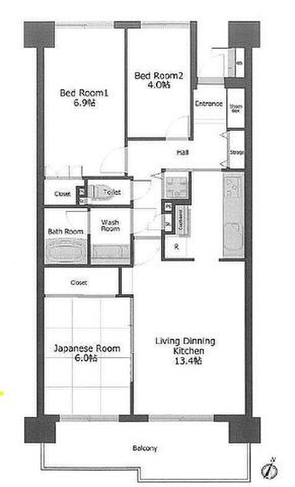 建物構造 | RC(鉄筋コンクリート) | 間取り詳細(帖) | リビングダイニングキッチン 13.4帖洋室 6.9帖和室 6畳洋室 4帖 | ||