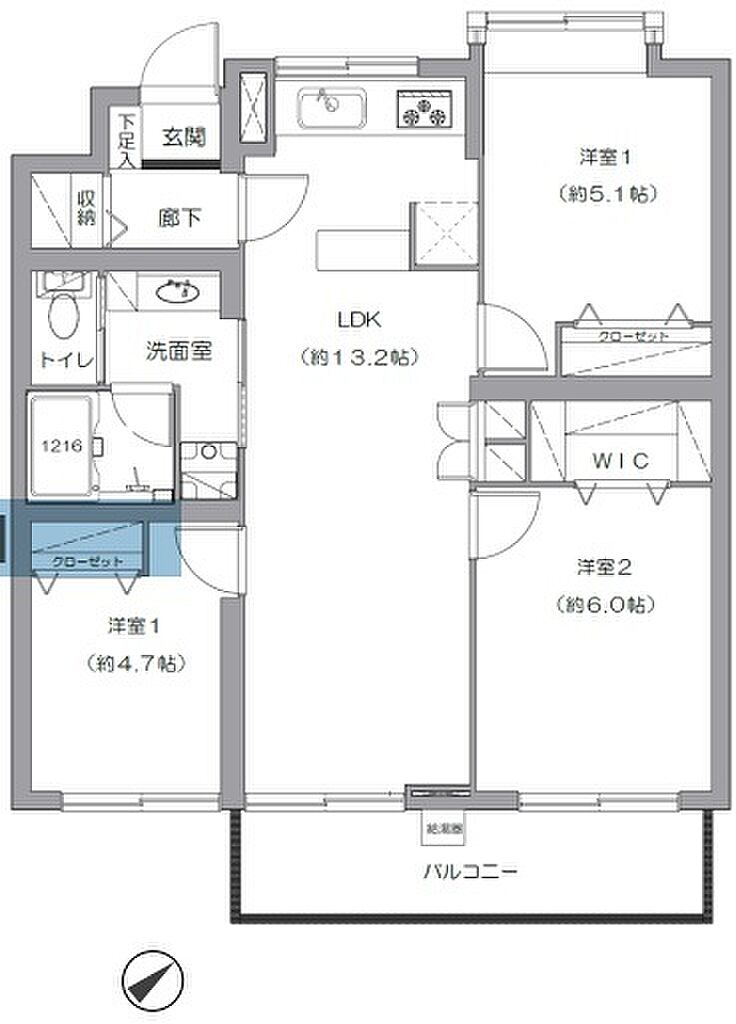 建物構造 | RC(鉄筋コンクリート) | 間取り詳細(帖) | リビングダイニングキッチン 13.2帖洋室 6帖洋室 5.1帖洋室 4.7帖 | ||