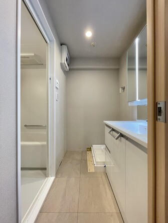 脱衣所、洗面所は小さなプライベートスペース。歯磨き、洗顔と毎日施す個人空間。換気も設置して、熱気などを開放して、爽やかなスペースになるように設計されています。